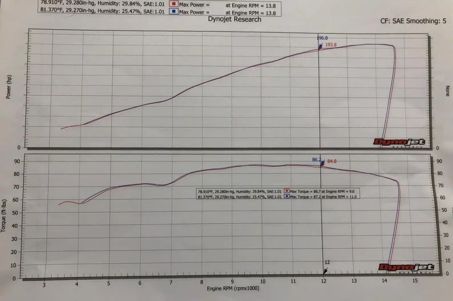 Dyno graph shows gains and curve change against standard velocity stacks.