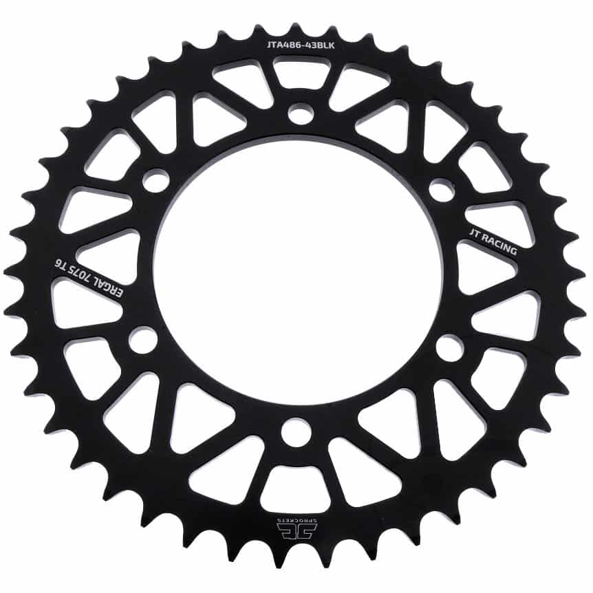 JT sprockets are made using only the best available materials. Aviation-grade 7075-T6 aluminium alloy for lightweight competition sprockets, SCM420 chromoly steel alloy for front sprockets, also JT sprockets is the only sprocket manufacturer using the ultra-durable high carbon C49 steel for rear sprockets.